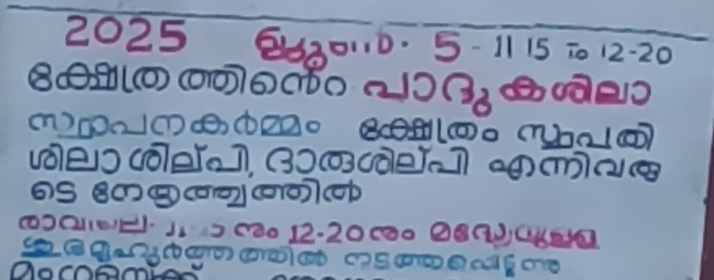 ഷഡാധാര പ്രതിഷ്ഠ ഏപ്രിൽ 25 ( മേടം 12 ) വെള്ളിയാഴ്ച്ച